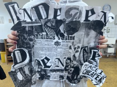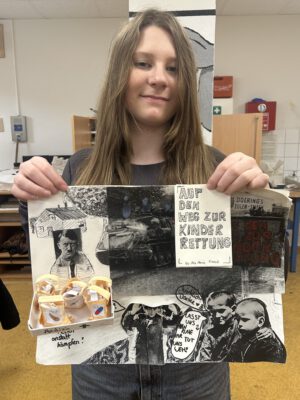 Ausgehend von ausgewählten Fotografien reagierten die Jugendlichen aus heutiger Perspektive auf das Gesehene : durch eigene Collagen, die den Bildern eine neue Botschaft verleihen.