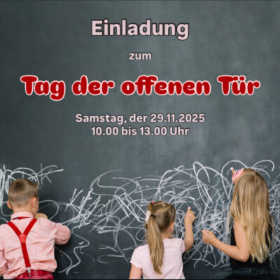 Am Samstag, 29.11.2025 öffnen wir von 10.00 bis 13.00 Uhr unsere Türen für alle zukünftigen Fünftklässler und ihre Erziehungsberechtigten. Entdeckt unsere Schule, lernt unser Team kennen und bekommt einen ersten Einblick in euren neuen Lebensabschnitt. Wir freuen uns auf euch!