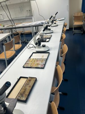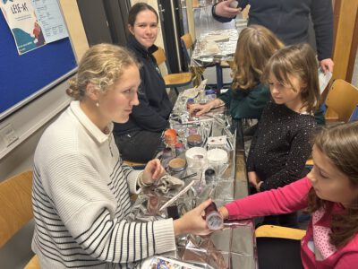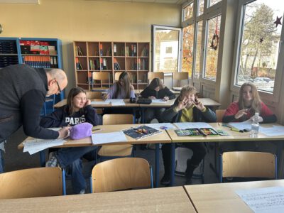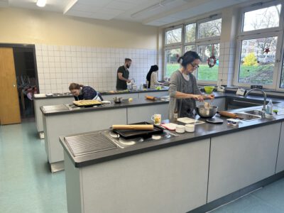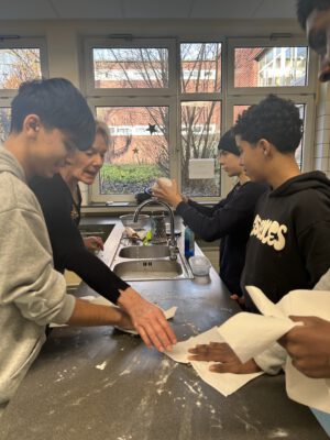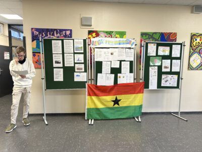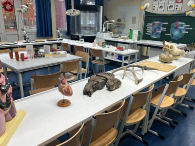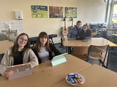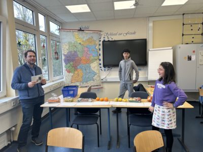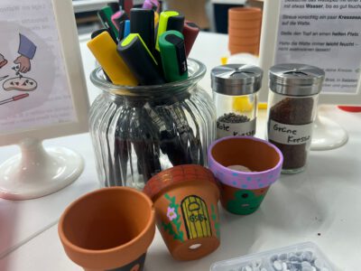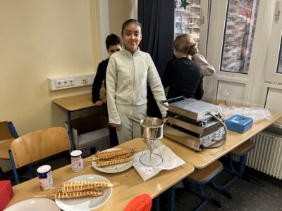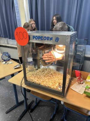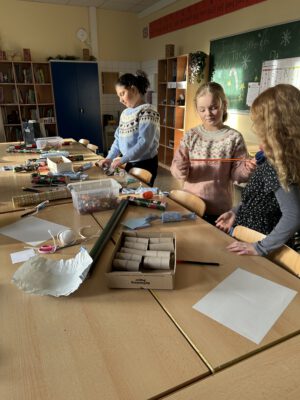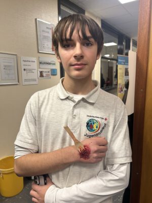 Sie konnten sich unsere Räumlichkeiten ansehen, zukünftige Mitschüler, Mitschülerinnen und das Kollegium kennen lernen sowie an verschiedenen Unterrichtssequenzen teilnehmen. Außerdem Bestand die Möglichkeit, sich in der Turnhalle körperlich zu betätigen, Christmas cracker zu basteln, zu malen, sich über unser Ghana-Projekt zu informieren und nicht zuletzt sich mit selbst gebackenen Waffeln, Keksen und Popkorn zu stärken. Die Erste-Hilfe-Projektgruppe zeigte, wie man sich um verletzte Menschen kümmern sollte und bemalte die Arme und Hände mit kunstvollen „Verletzungen“. Unser Sozialarbeiter Herr Marzinkowski nahm im Makerspace mit Schülerinnen und Schülern professionell Nachrichten auf und produzierte im 3-D-Drucker gewünschte Kunststoffelemente. Im Naturwissenschaftsraum bekamen alle Besucher Einblicke in unseren Biologie-, Physik- und Chemieunterricht.