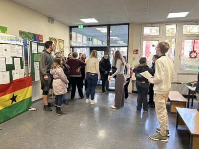 Unsere Schulleiterin Frau Gerichhausen beantwortete gerne alle Fragen zu unserem Konzept, während „Reiseführer“ unseren Gästen – auf Wunsch – auch die entferntesten Winkel des Schulgebäudes zeigten.